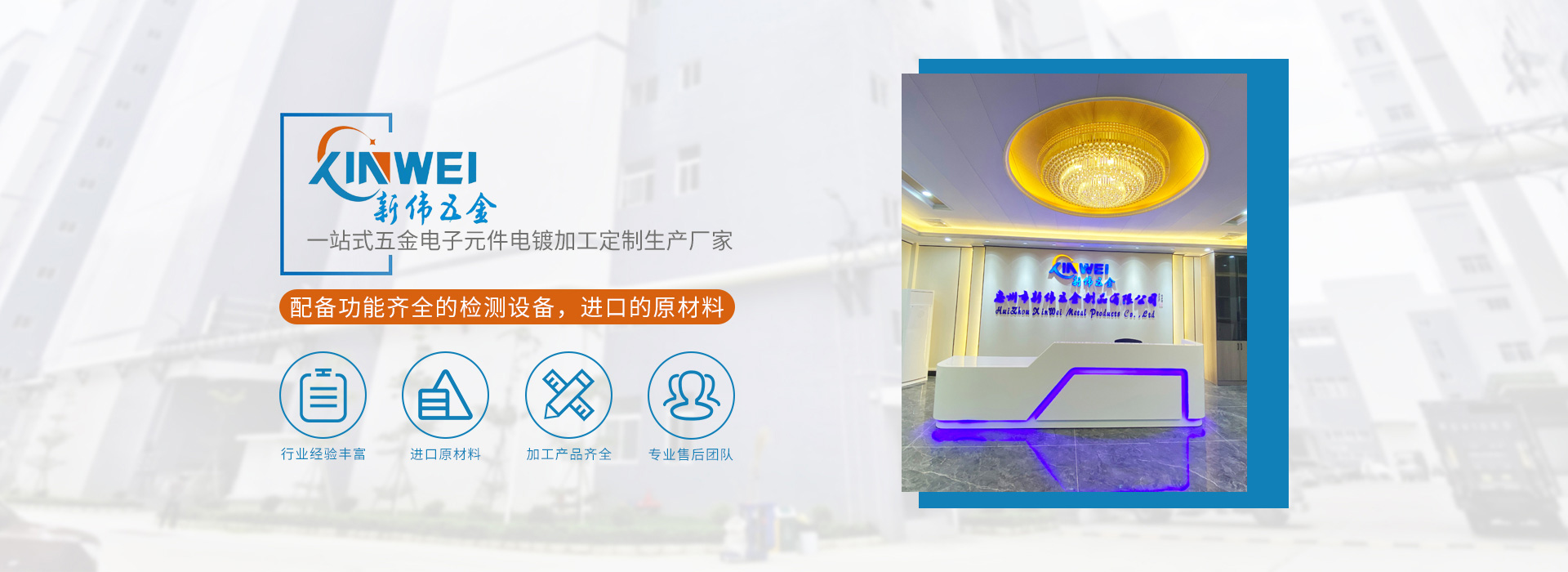 惠州市新偉五金制品有限公司(簡稱:新偉五金)坐落于中國廣東省惠州市,成立于2010年,是一家專業(yè)電鍍各種高品質功能性的環(huán)保五金電子元件供應商,公司已通過ISO9001:2015及IATF16949:2016質量體系認證。客戶至上,品質至上,承蒙新老客戶的信賴,公司發(fā)展迅速,廠房車間面積10000平方米,現有員工200名,并擁有一批從事電鍍行業(yè)10年以上、經驗豐富的技術骨干,為客戶解決許多疑難問題,另有一支品質工程小組,專業(yè)檢測產品品質,杜絕不良品外流,深受客戶好評。